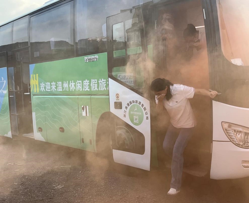 為(wèi)了(le)加强員(yuán)工(gōng)的安全意识,提升員(yuán)工(gōng)的安全技能(néng),在國(guó)庆节来临之际,浙江浪漫國(guó)际旅游有限公司组织全体員(yuán)工(gōng)进行(xíng)了(le)一(yī)次旅游车安全逃生演习,在本次演习中,对旅游车发生安全事故后如(rú)何进行(xíng)紧急疏散,对安全事故中的伤員(yuán)如(rú)何进行(xíng)紧急救护等场景进行(xíng)了(le)模拟演习